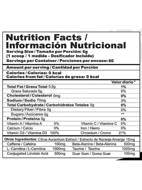 Es un producto de última generación diseñado para ayudar a cumplir tus objetivos facilmente, contiene los ingredientes más estudiados y con eficacia comprobada. Burner stack contiene 6g por porción de ingredientes, esta así diseñado para tener el 100% de las cantidades recomendadas, que a diferencia de los productos en cápsulas o tabletas solo contienen unas pequeñas dosis de estos.